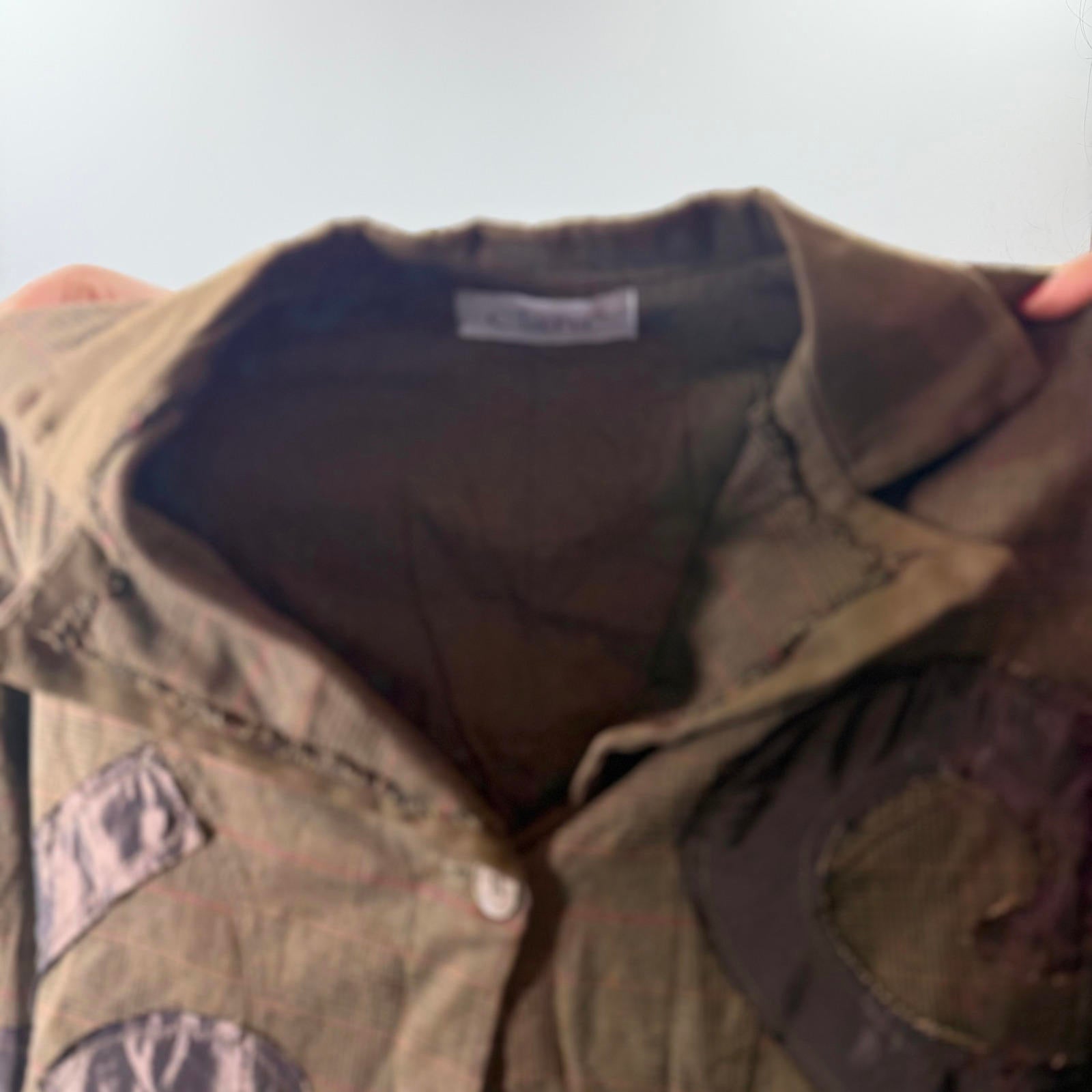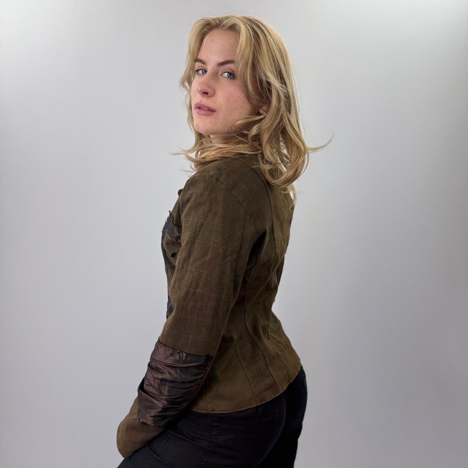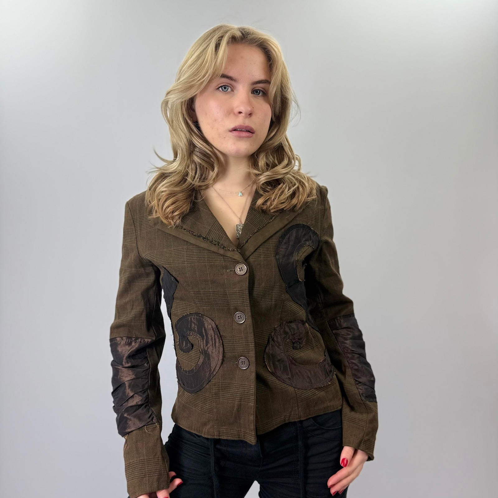Claru Brown Button-Up Blazer with Unique Patchwork Design- SIZE S