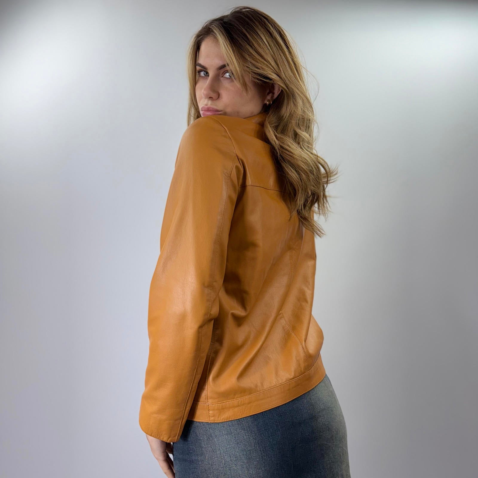 Garret's Women's Tan Leather Zip-Up Jacket- SIZE M