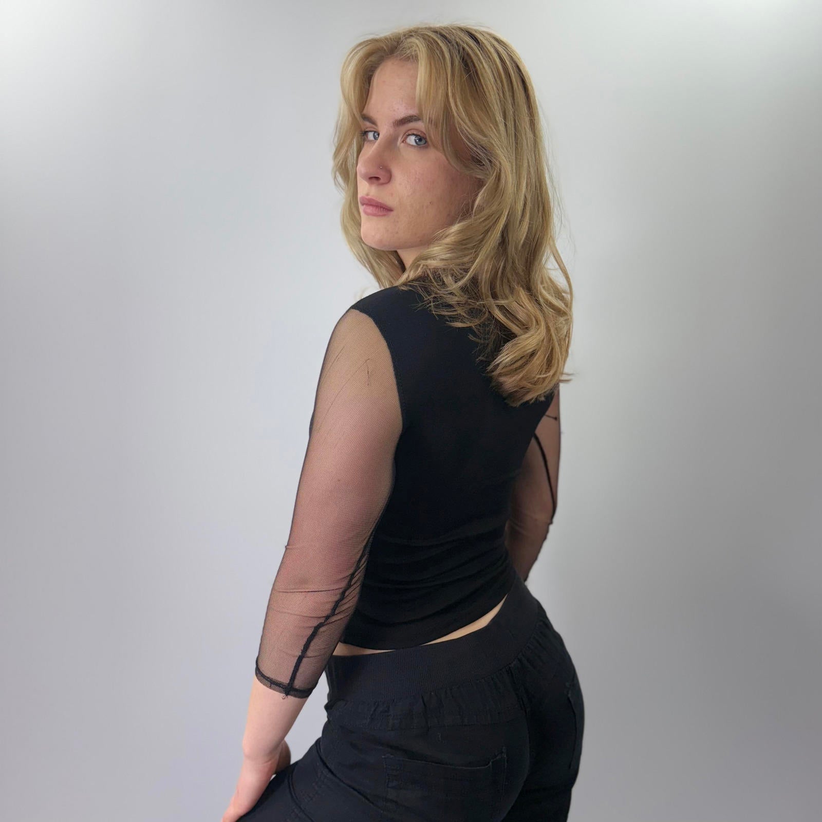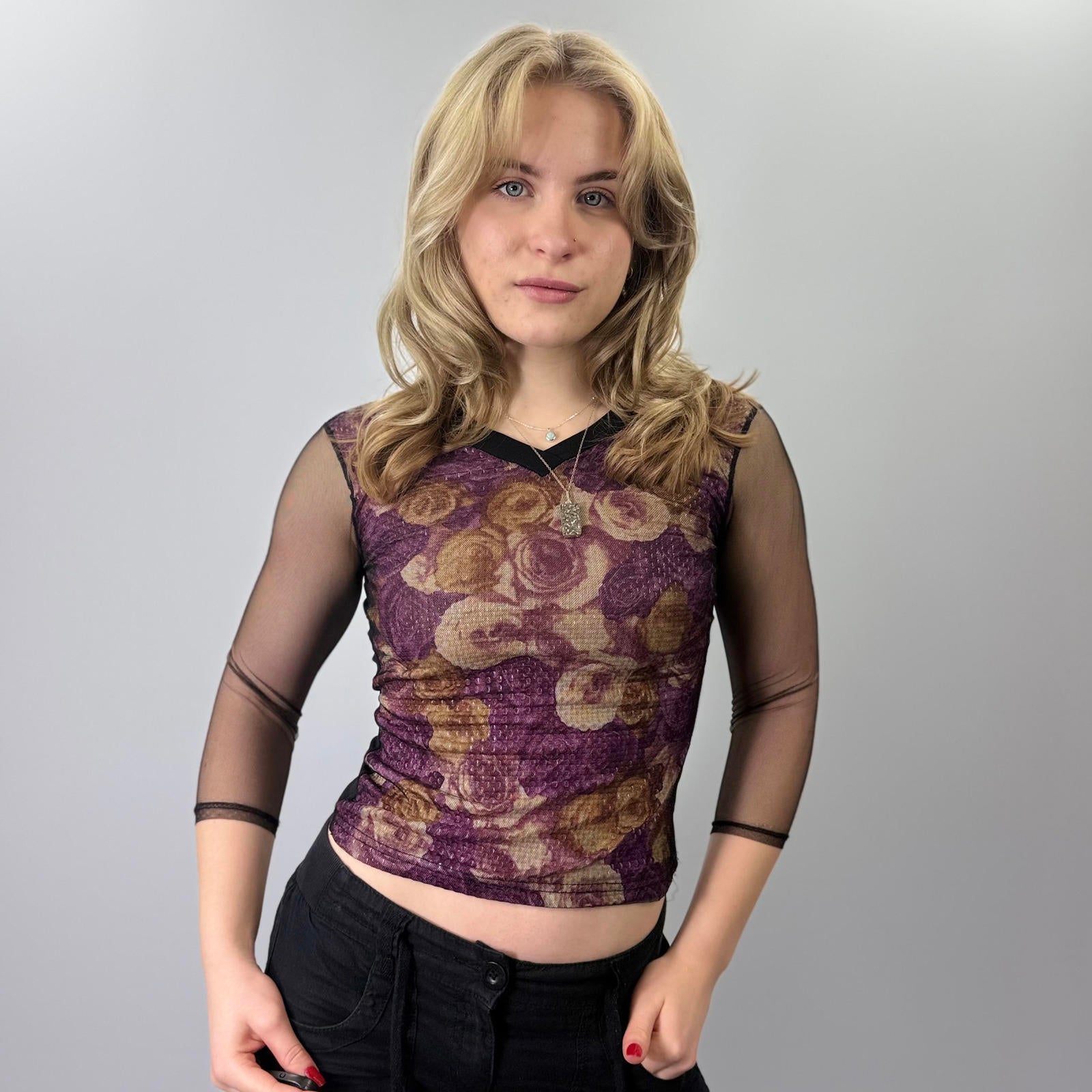 Women's Floral Mesh Sleeve Top- SIZE XS